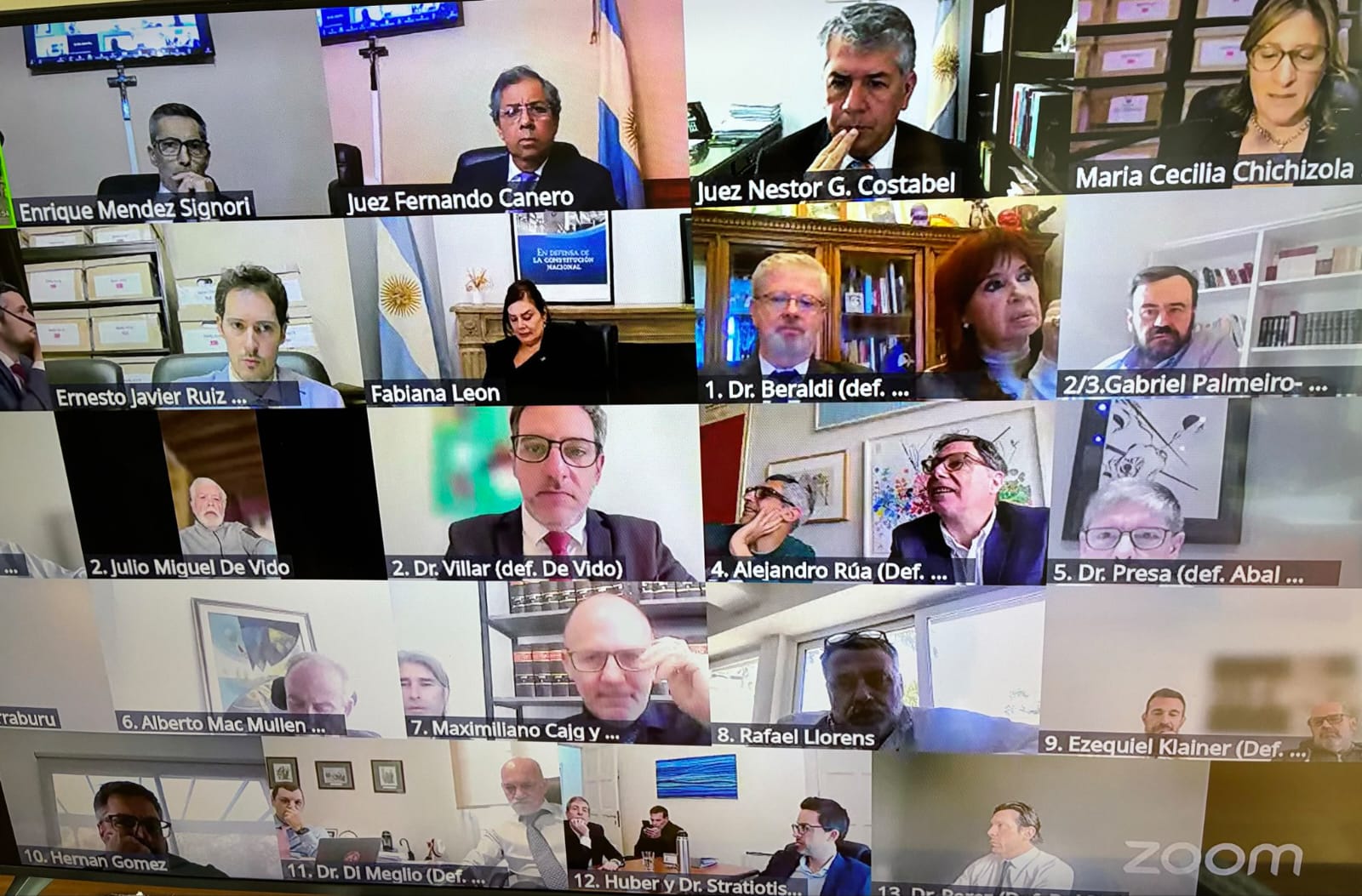 A las 08:30 comenzaron a conectarse los 86 acusados y más de un centenar de abogados. La acreditación por parte del Tribunal de todos los participantes en el juicio, donde se debe contabilizar a la querella, la Unidad de Información Financiera (UIF) y al Ministerio Público Fiscal, demoró cerca de dos horas.